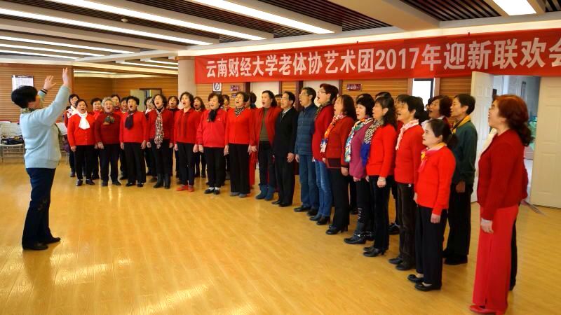 12月29日老体协艺术团在职工活动中心举行新年联欢会,迎接2017年。离退休工作处处长许坤泽,老体协主席童映河、副主席刘祖佑、顾问李有庆出席。