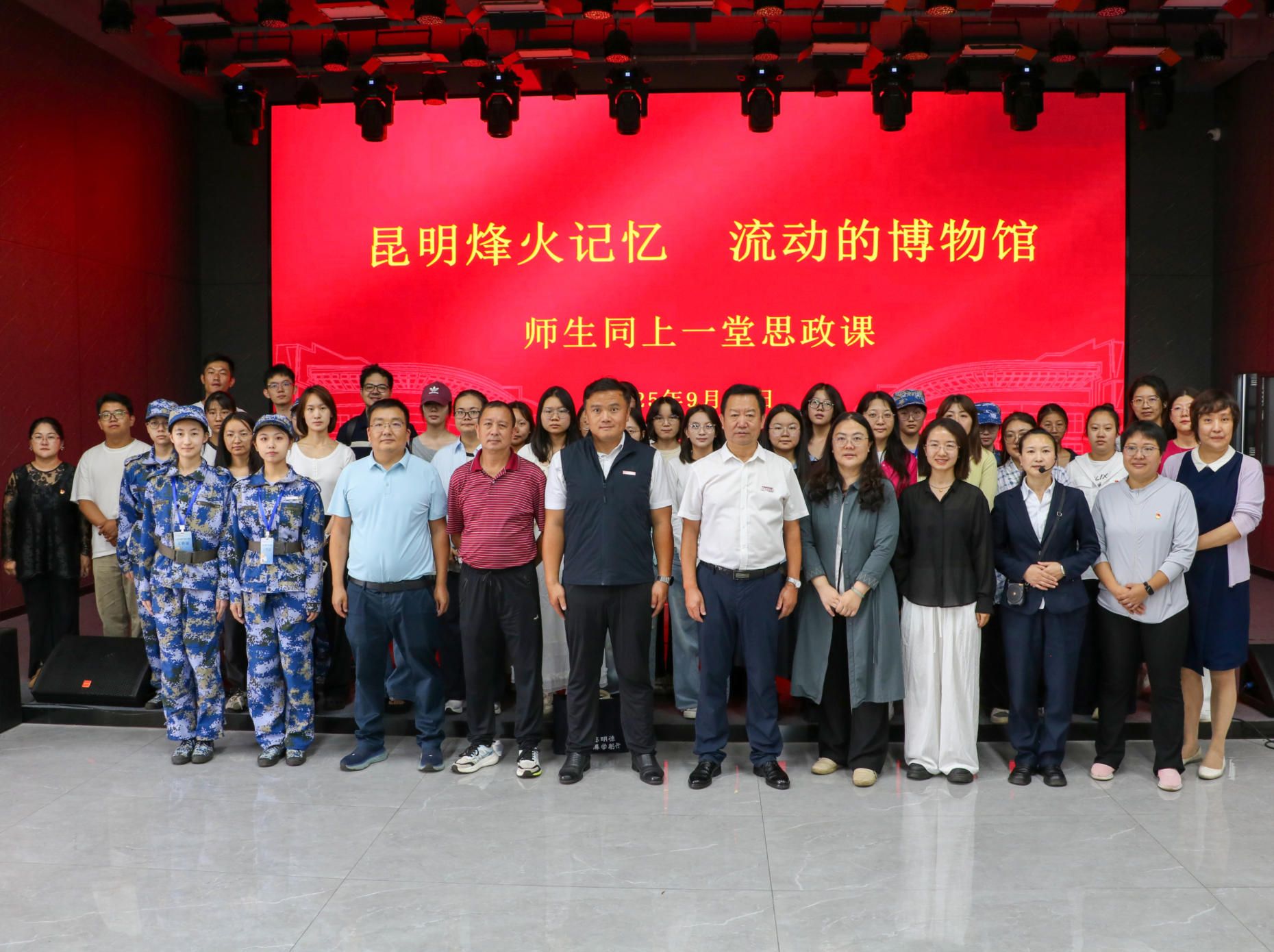 为深入学习贯彻习近平总书记在纪念中国人民抗日战争暨世界反法西斯战争胜利80周年大会上的讲话精神及习近平总书记关于弘扬伟大抗战精神的重要论述,引导广大师生铭记历史、缅怀先烈、珍爱和平、开创未来,学校宣传部、学生处、马克思主义学院联合昆明市博物馆组织开展“昆明烽火记忆•流动的档案馆”主题展览进校园活动。2025年9月10日上午,校党委副书记施仲军与师生一起观展,同上一堂爱国主义教育思政课