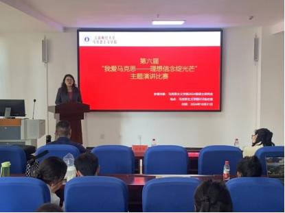 为了深入学习贯彻落实党的二十大精神,引导广大学生坚定理想信念,追求远大人生理想,勇当新时代的奋进者、开拓者、奉献者,把爱国情、强国志、报国行自觉融入实现中华民族伟大复兴的奋斗之中。2024年10月31日,马克思主义学院在北院英华苑A-416举办“我爱马克思——理想信念绽光芒”学生演讲比赛。