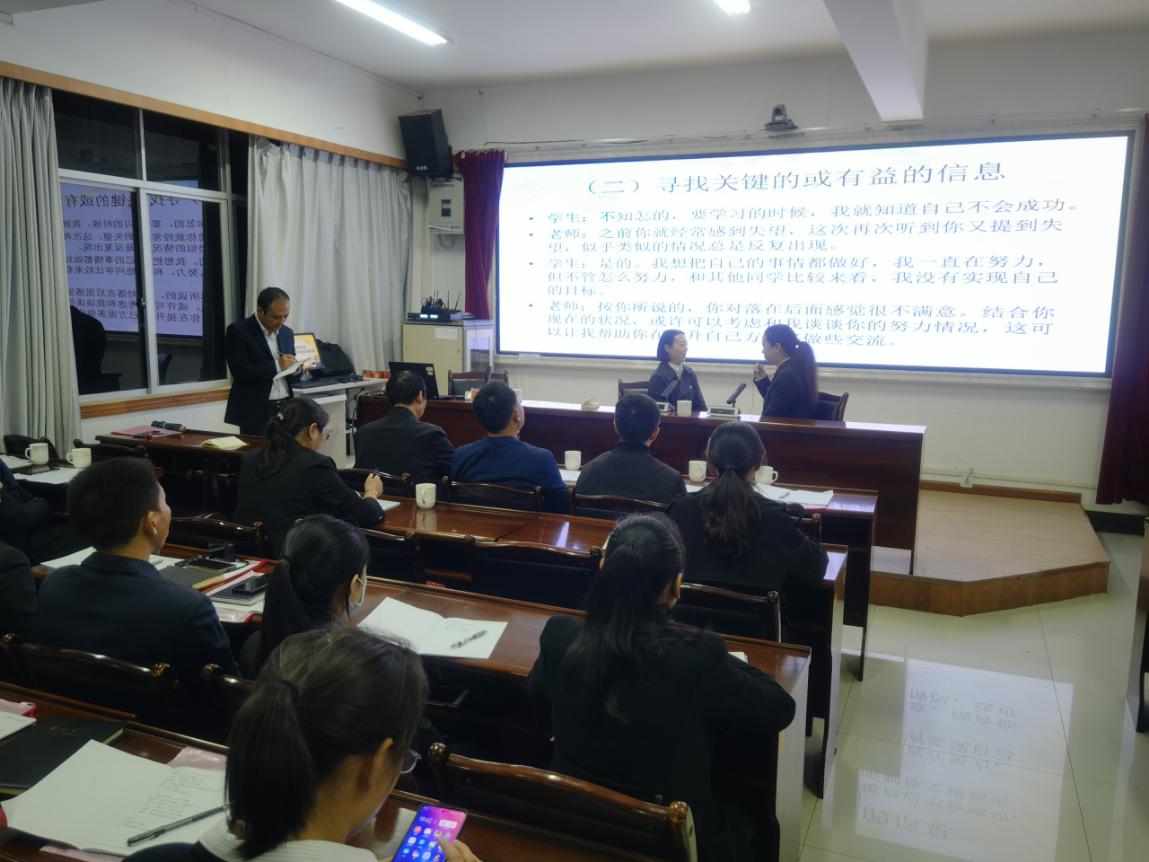 高建昆副教授采用情景模拟的教学方式,邀请两位老师即兴表演,模拟教师与学生之间爆发的问题,通过现场解决实际问题,进一步加强了授课效果。