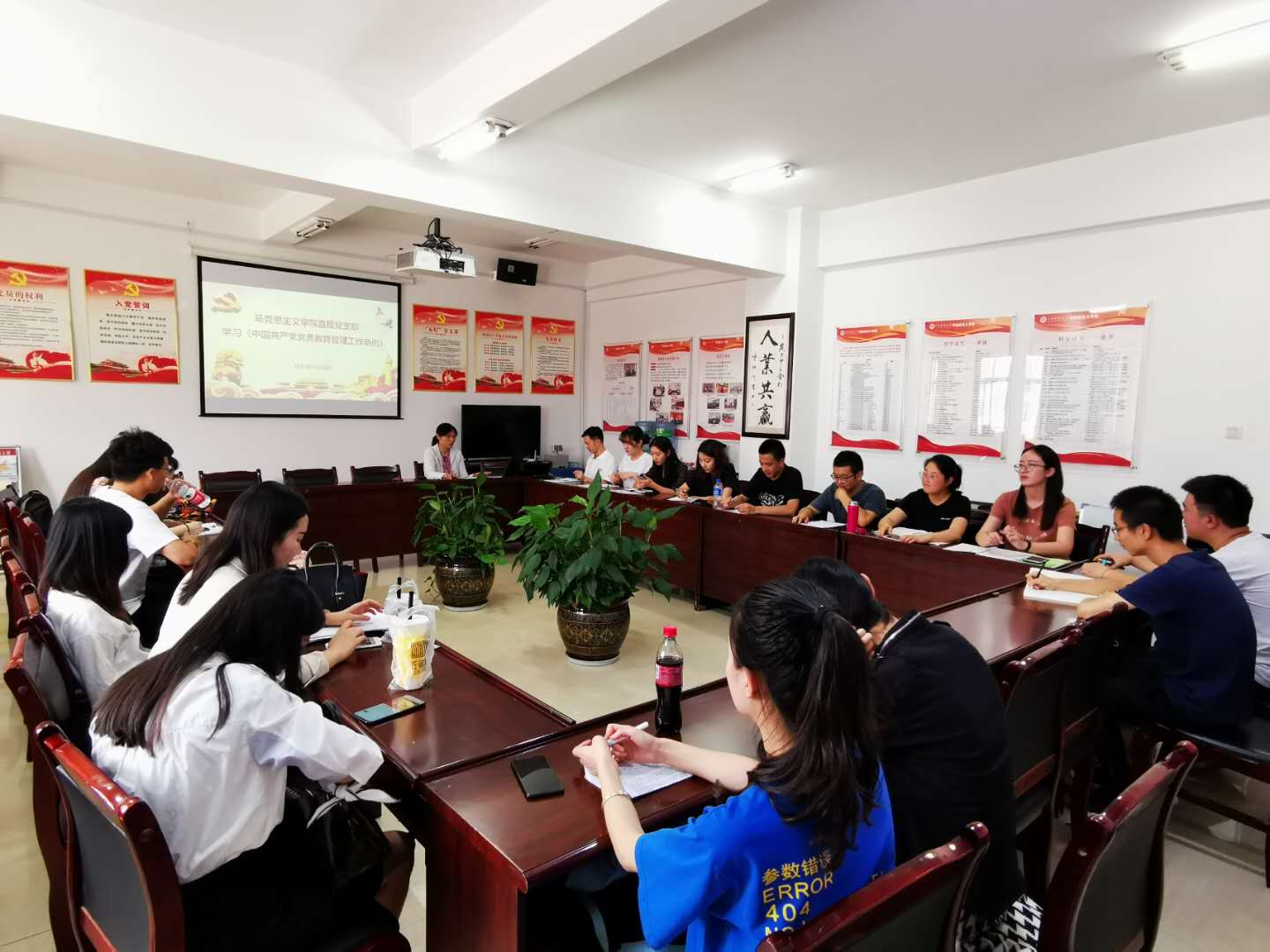 6月26日下午马克思主义学院直属党支部召开党小组会议,由学院直属党支部副书记赵小玎围绕学习贯彻《中国共产党党员教育管理工作条例》开展党课专题教育。