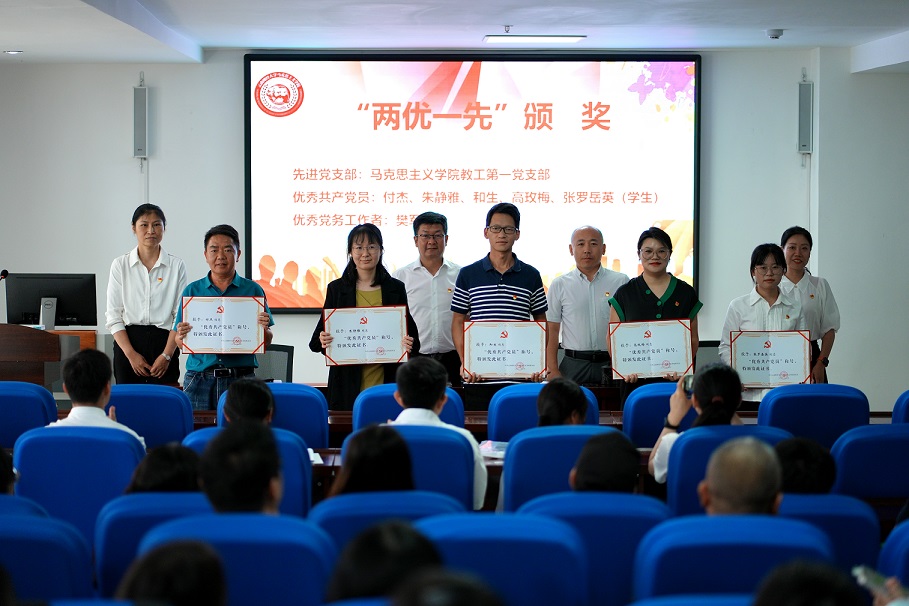 紧接着李亚军为获得“先进党支部”的马克思主义学院教工第一党支部授牌;党委委员宁乐锋院长和尚悦2位同志为“优秀共产党党员”付杰、朱静雅、和生、高玫梅、张罗岳英 和“优秀党务工作者”樊军颁发奖状;“优秀党员”代表付杰同志发言。