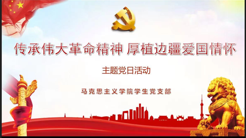 为教育引导党员厚植爱国主义情怀,赓续爱国主义传统,激发党员的民族自豪感和国家荣誉感,2022年9月21日下午15:00时,马克思主义学院学生党支部召开党员大会,开展“传承伟大革命精神 厚植边疆爱国情怀”主题党日活动。本次主题党日活动由学生党支部书记李贞同志主持,学生党支部共13名党员参加。