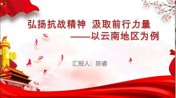 会上,13名党员共同观看了弘扬爱国主义精神宣传片,并在陈睿同志的带领下,以“弘扬抗战精神汲取前行力量”为题,结合云南地区在抗战时期做出的伟大牺牲和巨大贡献,深入学习了天下兴亡、匹夫有责的爱国情怀;视死如归、宁死不屈的民族气节;不畏强暴、血战到底的英雄气概和百折不挠、坚忍不拔的必胜信念。