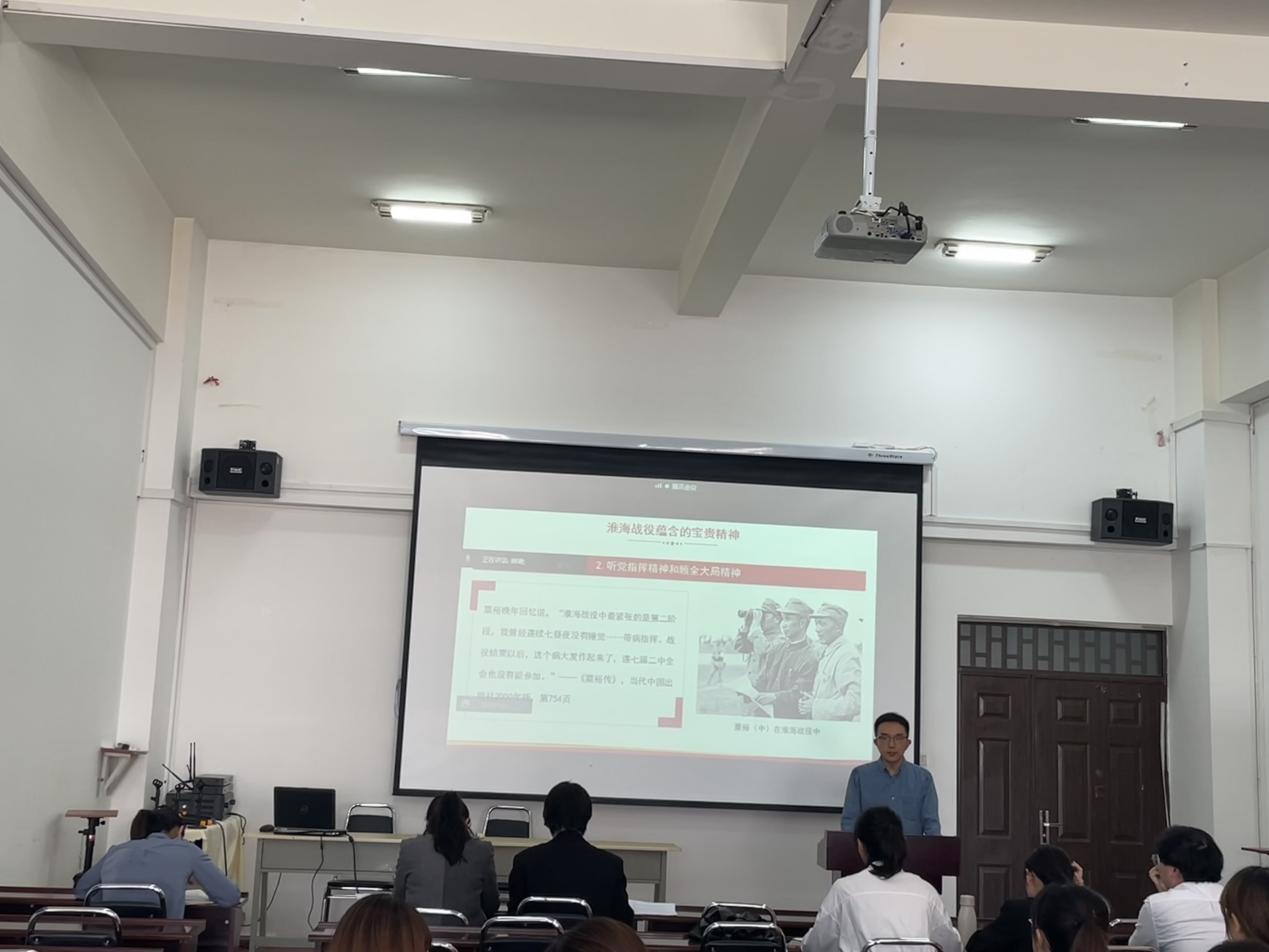 会上,17名党员与入党积极分子共同学习了习近平总书记在中国人民大学考察时的重要讲话,马慧同志以樊贞子、吴应谱和龚续潜等新时代的优秀榜样为例,分享了自己的学习心得。此外,本次主题党日活动还邀请了党史宣讲团成员孙旗同志,孙旗同志以“淮海战役”为题,从党史的角度对淮海战役在中国革命史上的重要地位和作用、宝贵的革命精神及其对当代的启示意义进行了阐述,学习内容深刻,讲解生动,整体学习效果良好。
