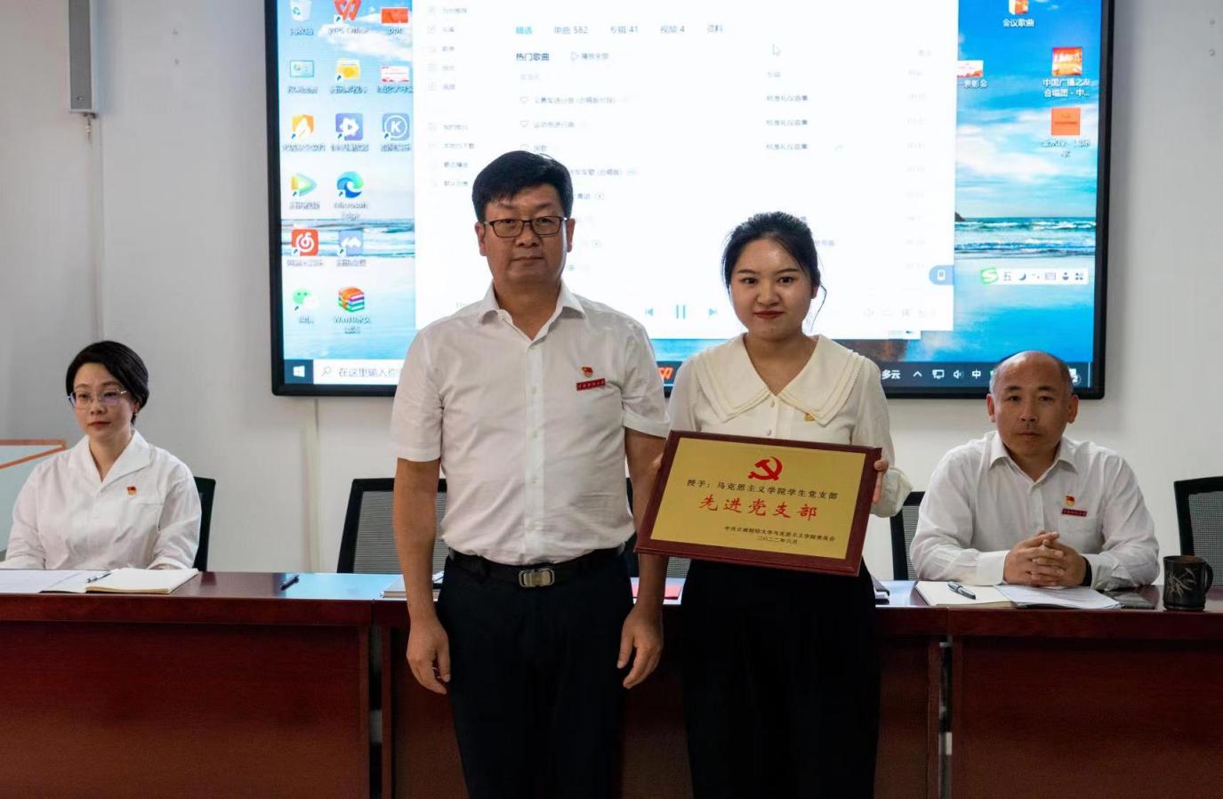 颁奖仪式上,李亚军为获得“先进党支部”的马克思主义学院学生党支部授牌。付杰、张彬(学生)等同志获评学院“优秀共产党员”,并上台领奖;朱静雅、樊军等同志获“党史学习教育”主题征文奖项。校级“优秀党员”代表罗小青同志在发言中表示,要牢记党员身份、不忘理想信念,立足岗位、恪尽职守、忠诚奉献,以实际行动践行入党誓言。