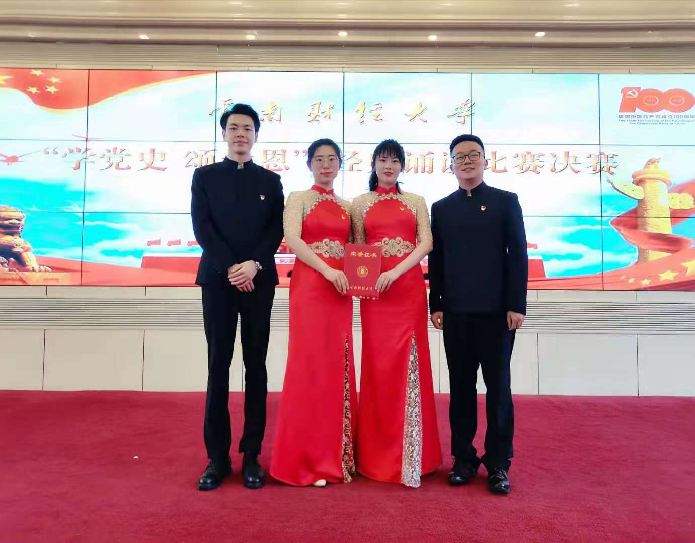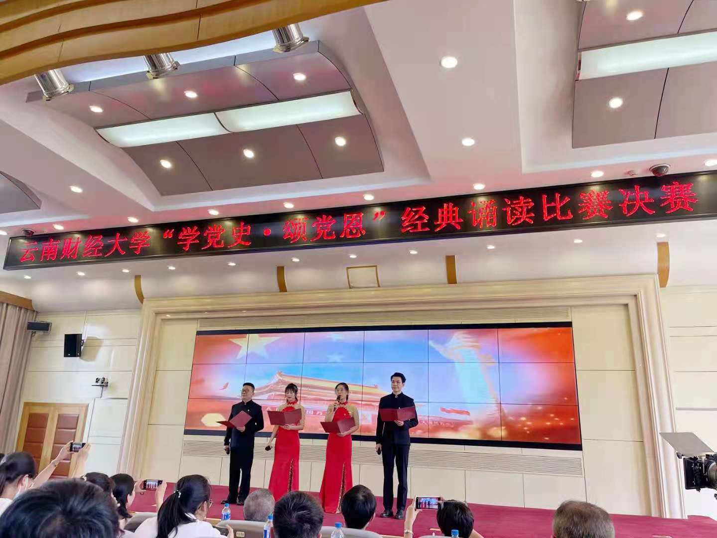 从初赛到决赛,学院领导高度重视,精心组织。学院党委书记李亚军亲自指导参赛选手,从发音方式到动作表情,从情感把握到技巧运用,抓细节、做示范。学院分工会主席马雁琳全程陪同,协调各方资源支持比赛。葛已强、阮媛、季金丞、汪晓洋四位选手刻苦训练,反复练习,以最佳状态代表学院工会参加比赛。经过初赛较量,马克思主义学院分工会突出重围,成功晋级决赛。决赛场上,精彩演绎了由学院教师原创的作品《穿越风雨的100年》,生动展示了中国共产党的百年峥嵘岁月,讴歌了对党的无限忠诚与热爱,满腔热血融化在铿锵有力的朗诵声中,用最美的声音歌颂党,祝福党的百年华诞,精彩的朗诵赢得了热烈掌声。