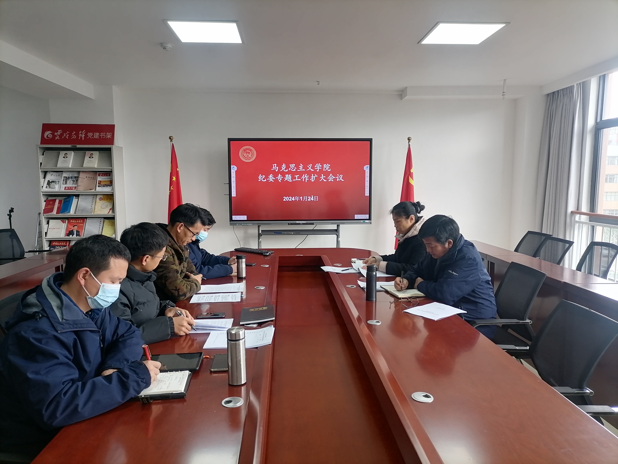 2024年1月24日,马克思主义学院纪委召开扩大会议,学习贯彻二十届中央纪委三次全会和十一届省纪委四次全会精神,以及新修订的《中国共产党纪律处分条例》。学院党委书记李亚军出席会议并讲话,党委副书记、纪委书记赵小玎主持会议。