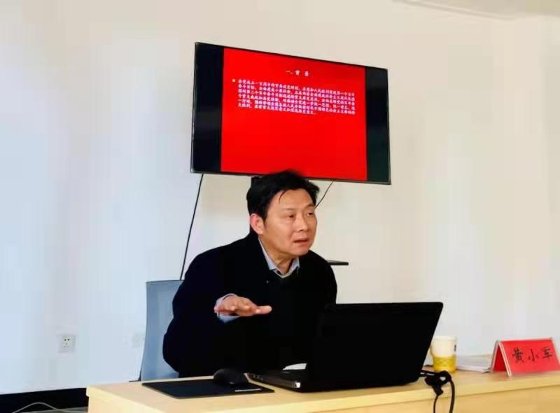 黄小军从党的十九届六中全会召开背景、中国共产党百年奋斗的重大成就、“两个确立”的决定性意义、党的十八大以来取得的成就、中国共产党百年奋斗的历史意义、中国共产党百年奋斗的历史经验等六个方面对党的十九届六中全会精神进行解读。