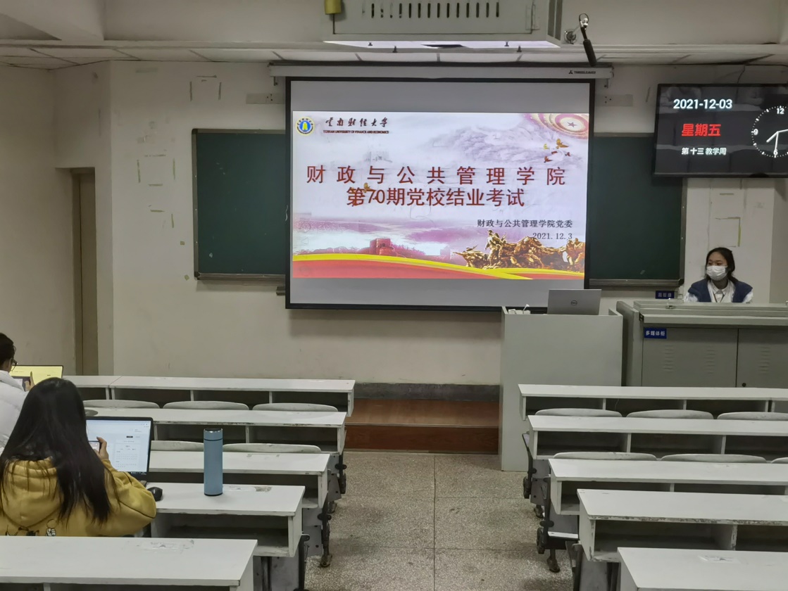 为检验入党积极分子这一学期在党校的学习成果,加深党史知识的学习和巩固,财政与公共管理学院于2021年12月3日星期五晚上7:30在北院卓远楼320和421两间教室开展第70期党校结业考试。