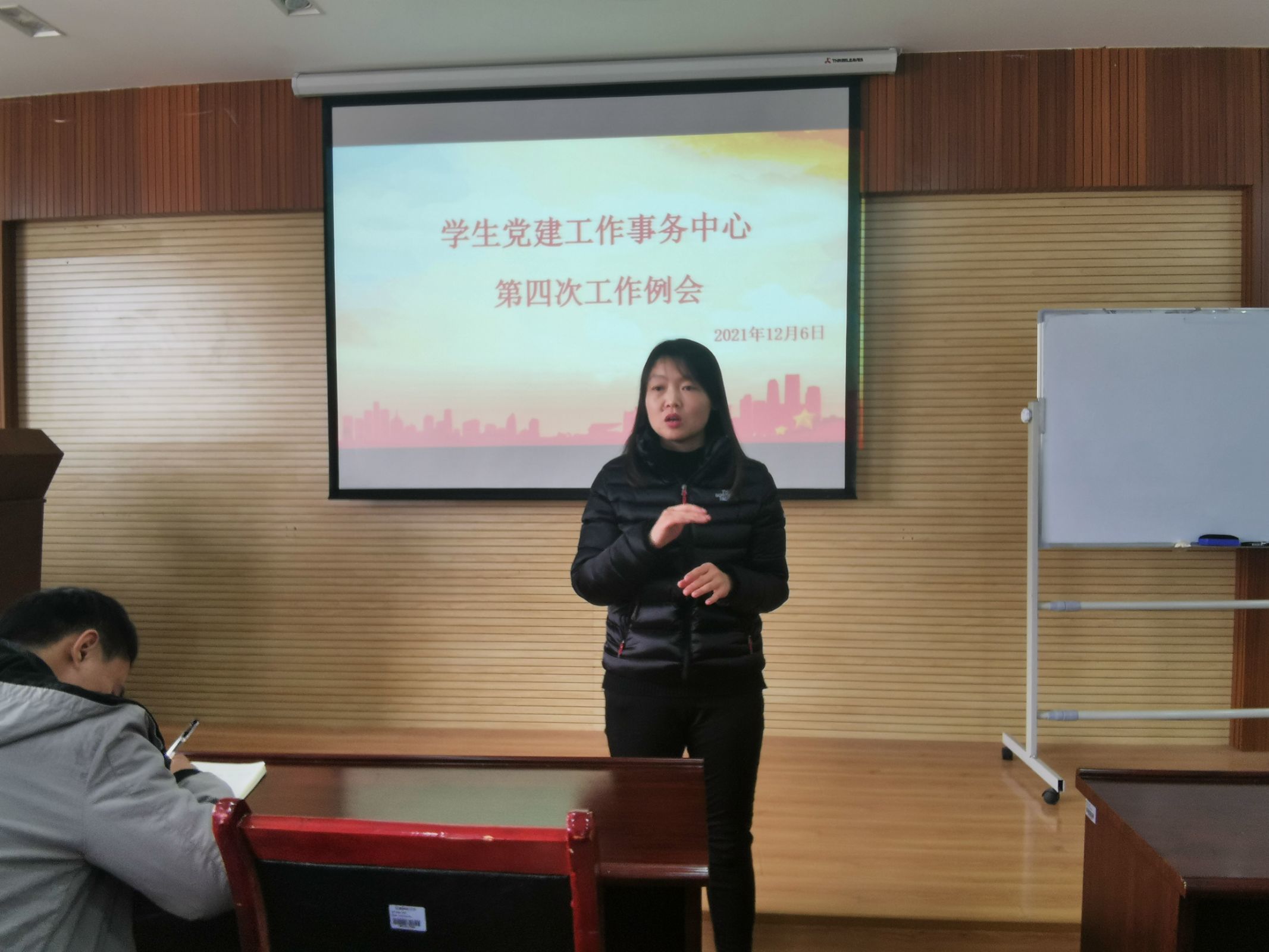 为明确工作任务目标,提高工作效率和工作积极性,2021年12月6日13:00,财政与公共管理学院学生党建工作事务中心于北院逸夫楼603开展了第四次工作例会,本次会议由学生党建工作事务中心副主任董硝峰主持,学院组织员李亚老师、李昊哲老师,以及财政与公共管理学院学生党建工作事务中心全体成员参加。