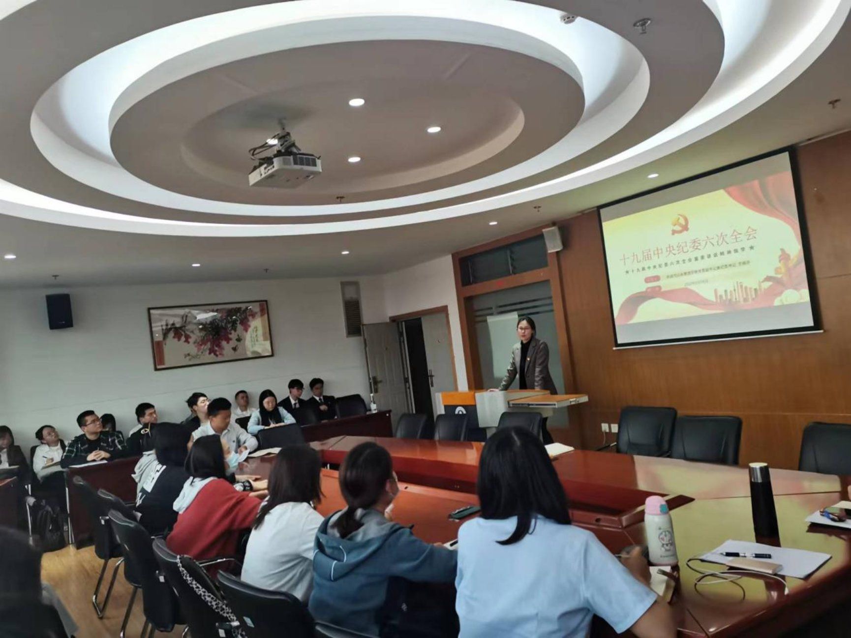 2022年5月18日下午6点30分,财政与公共管理学院研究生第四党支部联合本科第三党支部在逸夫楼923教室开展党课活动。本次党课活动由财政与公共管理学院党委副书记王晓芬老师主讲,带领支部全体党员同志参与“学习十九届中央纪委六次全会重要讲话精神”主题党课活动。