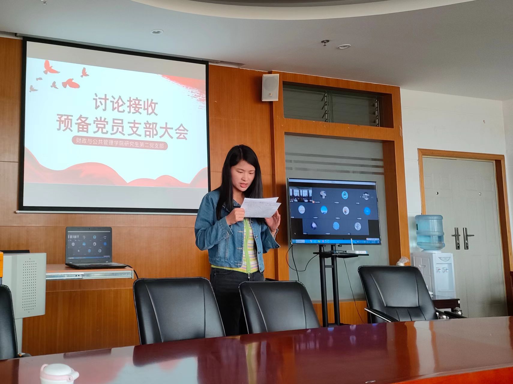 2022年5月11日下午3点,财政与公共管理学院研究生第二党支部在逸夫楼923召开支部大会,支部全体党员参会,党委委员和立道教授到会指导,会议由支部书记毛丹主持。