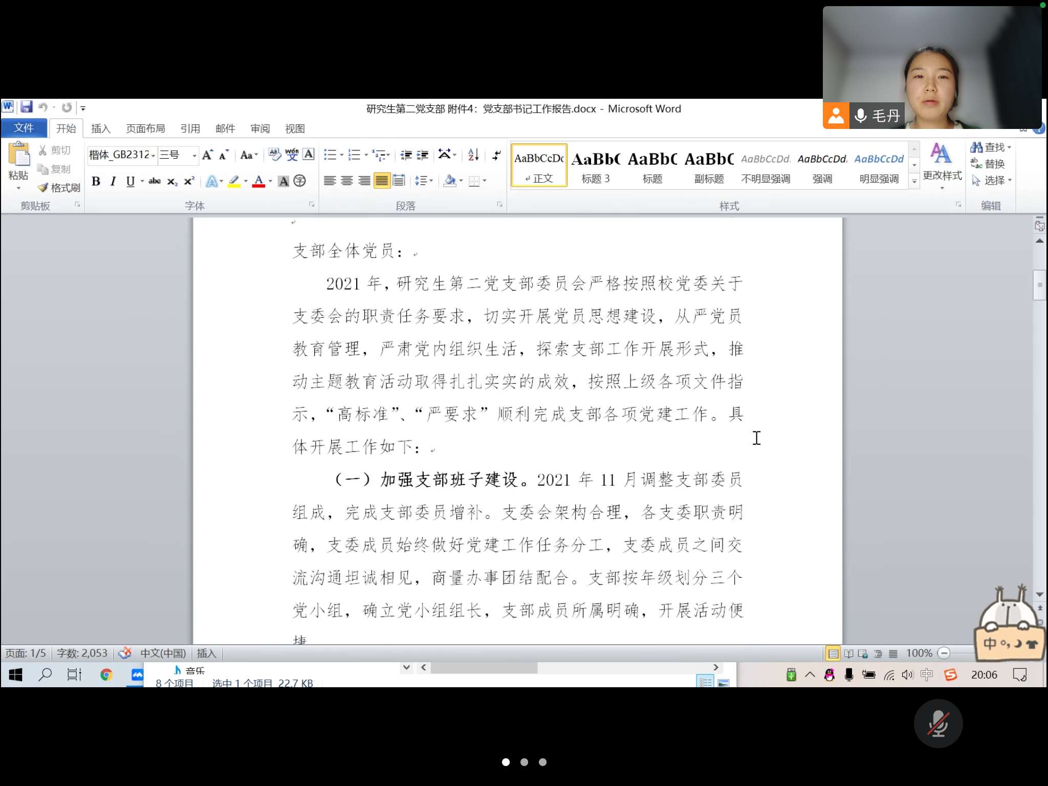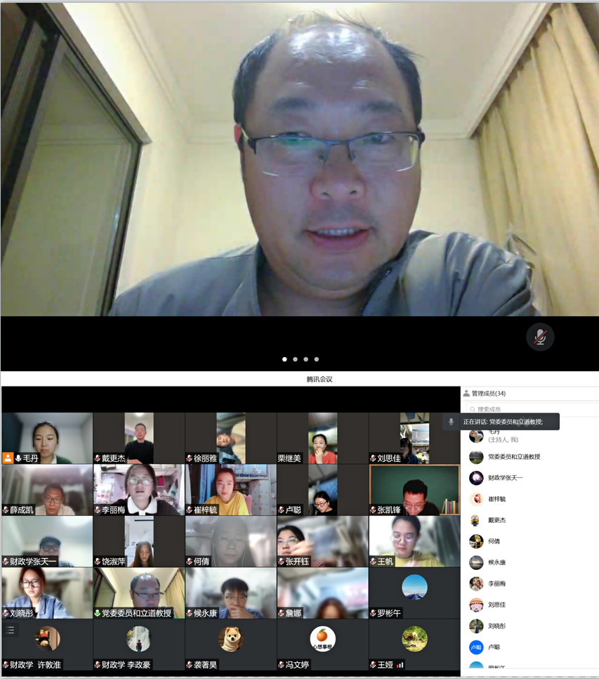 2022年3月13日晚上8:00,财政与公共管理学院研究生第二党支部在腾讯会议上召开了2021年度组织生活会暨民主评议党员大会,支部全体党员参会,财政与公共管理学院党委委员和立道同志到会指导。会议由党支部书记毛丹主持。