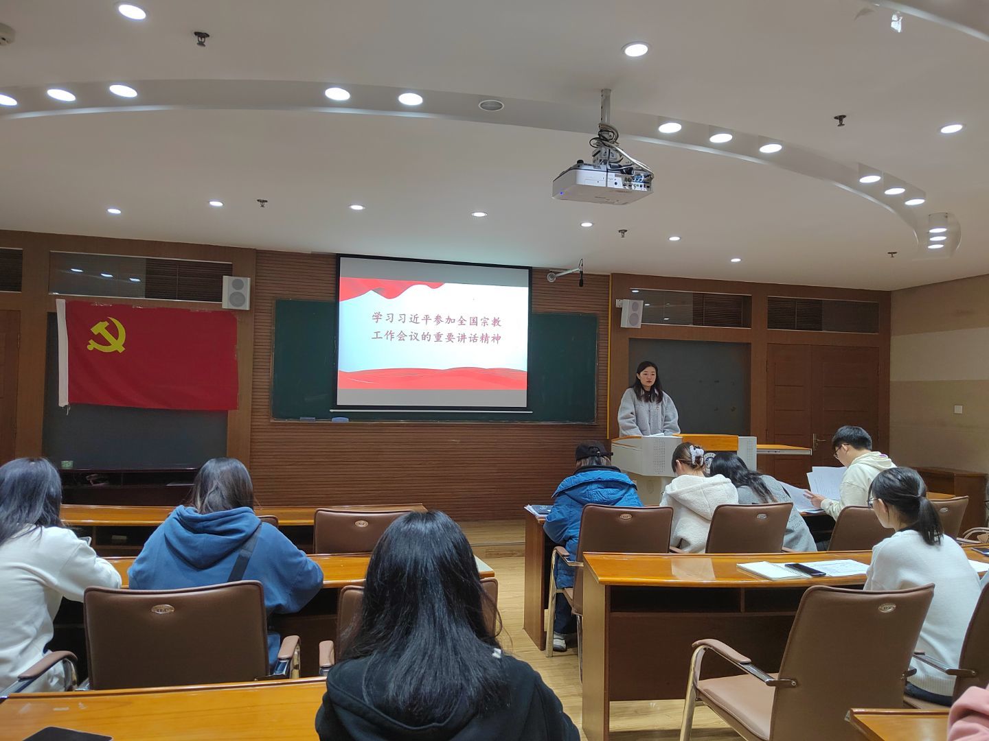 本科生第四党支部于2021年12月22日晚七点在逸夫楼707召开12月份党小组会。本次会议由支部书记葛译遥支持,会议的主题是学习习近平参加全国宗教工作会议的重要讲话精神。