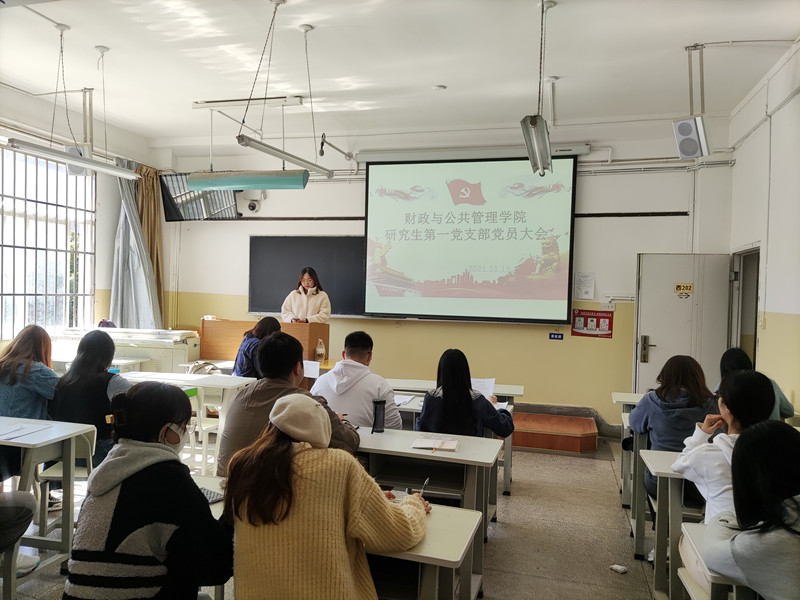11月19日,研究生第一党支部在逸远楼西202教室召开支部党员大会,会议由支部书记赵珺蓉主持,学院副处级组织员杨燕红到会指导。