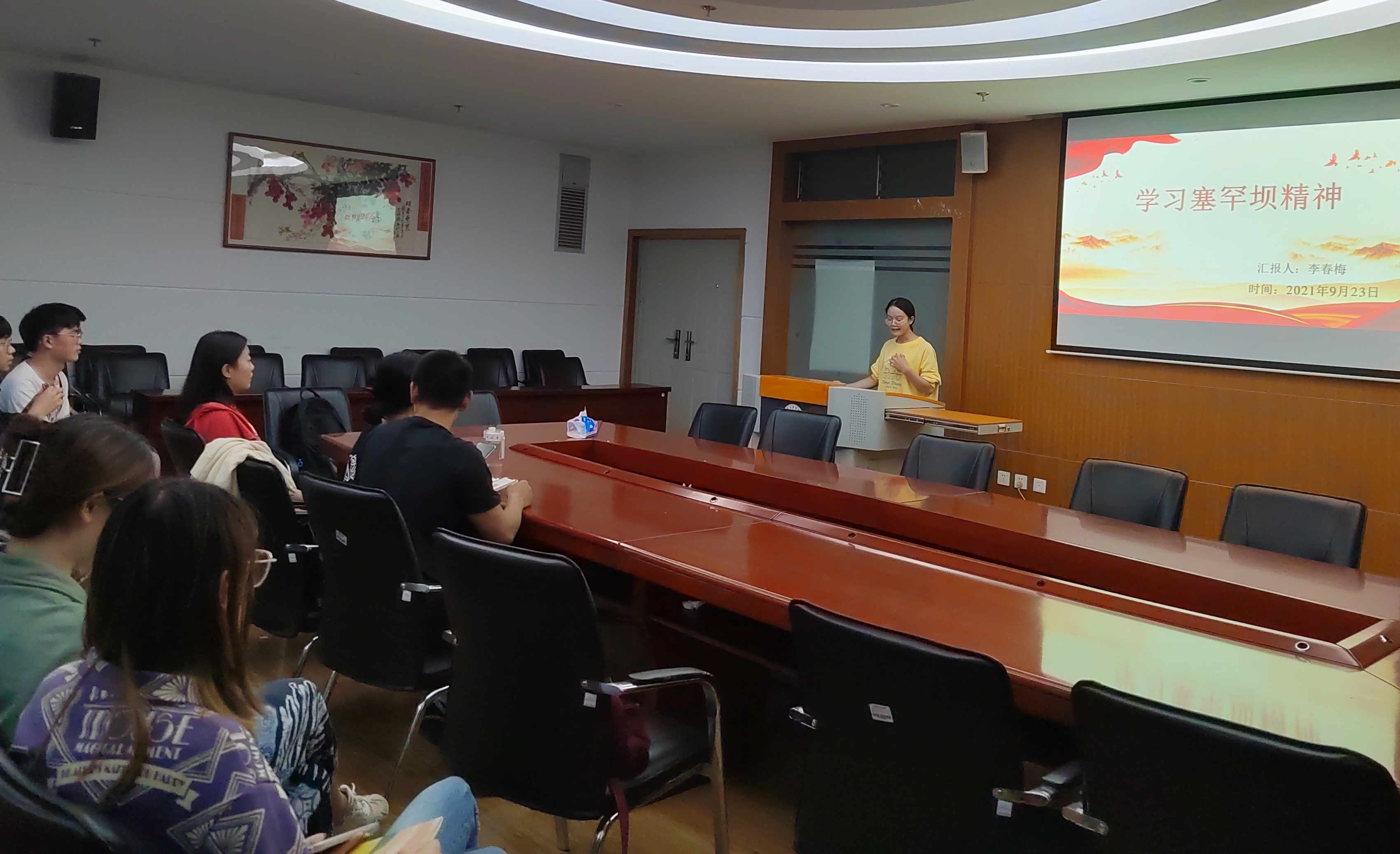 2021年9月23日星期四晚上7点,为提高同志们对于塞罕坝精神的理解和掌握,财政与公共管理学院本科生第四党支部召集全体党员、预备党员在逸夫楼923举办学习塞罕坝精神的党课学习活动。本科生第四党支部书记葛译遥同志出席本次活动,支部副书记李春梅同志为大家讲解塞罕坝精神。