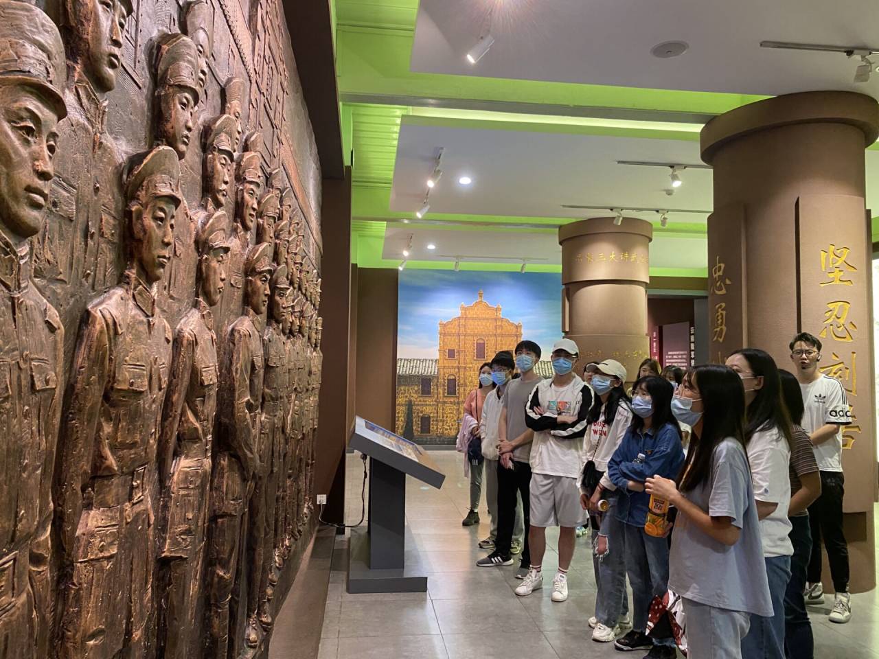 下午两点半,支部书记葛译遥同志领导支部党员同志们在云南陆军讲武堂门前集合完毕后,有序进入陆军讲武堂,开启了一段深入人心的党员红色教育历程。半小时自由活动后,下午三点,同志们在讲解员的带领下,开始了一段与讲武堂历史和史上优秀将领休戚相关的学习旅程。