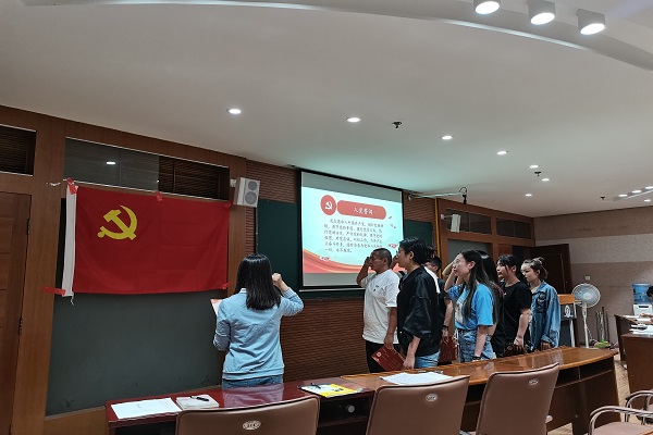 支部书记李亚为本次转正的党员颁发政治生日卡,对他们表示祝福与鼓励。随后在李亚书记的领誓下,党员们面对党旗,右手举拳过肩,郑重许下入党誓词,以铿锵有力的宣誓声抒发对党忠诚的决心,宣誓场面庄严而神圣,在场的每一位党员同时接受了一次精神的洗礼。宣誓仪式完毕,李亚书记进行总结发言,对转正成为正式党员的同志提出了要求与期望,表示每位同志都应以实际行动来践行入党誓言,铭记入党初心,并以此为新的起点,时刻保持共产党员的先进性,发挥先锋模范作用,为党的事业不断奋斗。