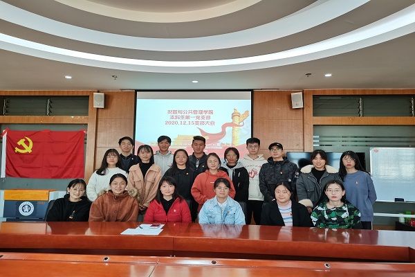 2020年12月15日中午,财政与公共管理学院本科生第一党支部在逸夫楼923召开十二月主题党日活动,活动主题是学习宣传党的十九届五中全会精神。