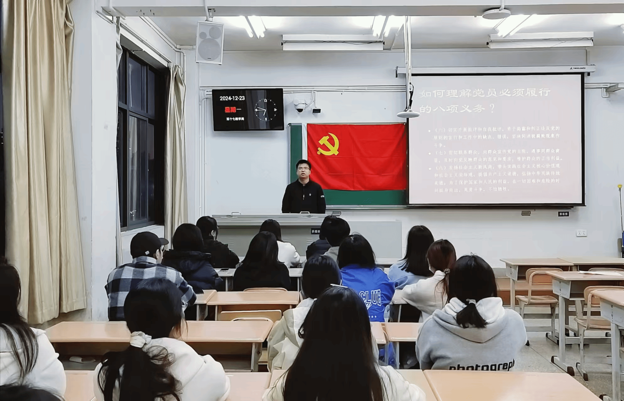 2024年12月23日,财政与公共管理学院本科生第二党支部在北院卓远楼428教室开展“加强党性修养,锤炼坚强党性”专题党课学习。