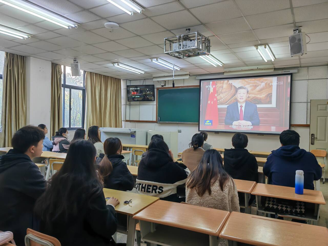 支部全体党员同志集体学习《国家主席习近平发表二〇二四年新年贺词》。新年贺词全面回顾过去一年党和国家事业取得的不平凡成就,满怀豪情赞颂神州大地的新变化、新气象,热切展望未来一年的新目标、新愿景。支部全体党员对贺词内容进行热烈讨论,谈认识、谈体会、谈作为,并表示会牢记嘱托,在奋进中拥抱梦想,将时代的担子勇扛在肩,以青春之名创造无限可能,为民族复兴挺膺担当。