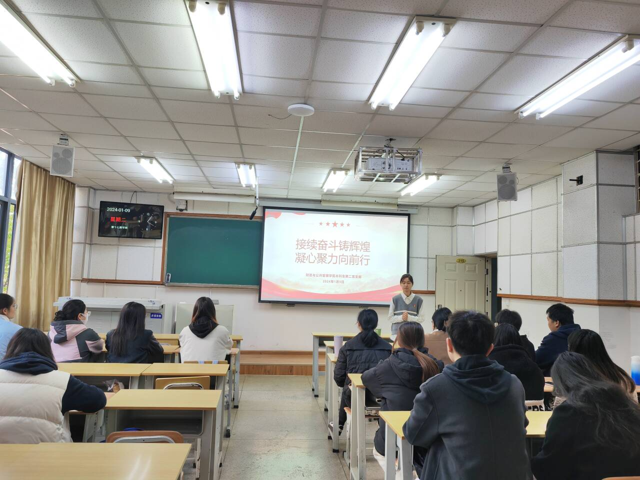 2024年1月9日,财政与公共管理学院本科生第二党支部在北院卓远楼215室召开“接续奋斗铸辉煌 凝心聚力向前行”一月主题党日活动。