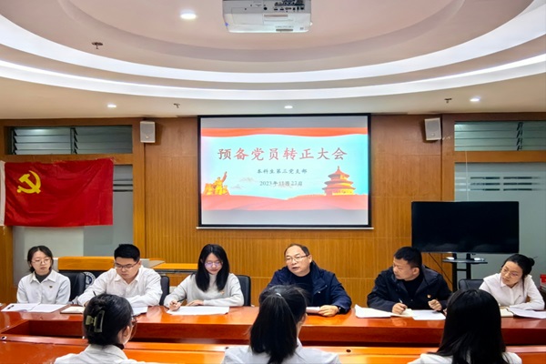 2023年11月27日,财政与公共管理学院本科生第三党支部于逸夫楼923召开讨论预备党员转正的支部党员大会。学院党委委员和立道副院长到会指导,会议由支部书记杨德会同志主持。