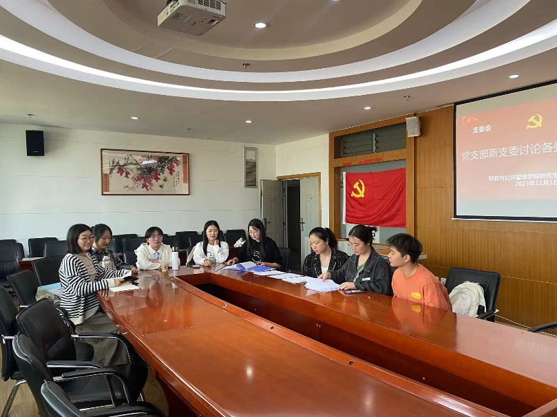 2023年11月1日下午,财政与公共管理学院研究生第三党支部于逸夫楼923教室召开支部大会。支部大会由副书记龚云垚同志主持,本次会议分三个阶段进行。