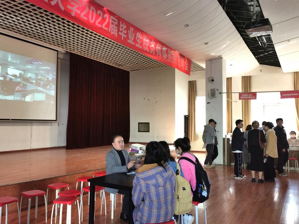 本次招聘会由云南省注册税务师协会、云南省注册税务师行业党委,与beat365财政与公共管理学院、会计学院及经济学院联合主办。云南省注册税务师协会秘书长杨银波、副会长熊斌,财政与公共管理学院党委副书记王晓芬、会计学院党委副书记王涛到招聘会现场了解毕业生应聘情况,并与同学们进行深入交流。