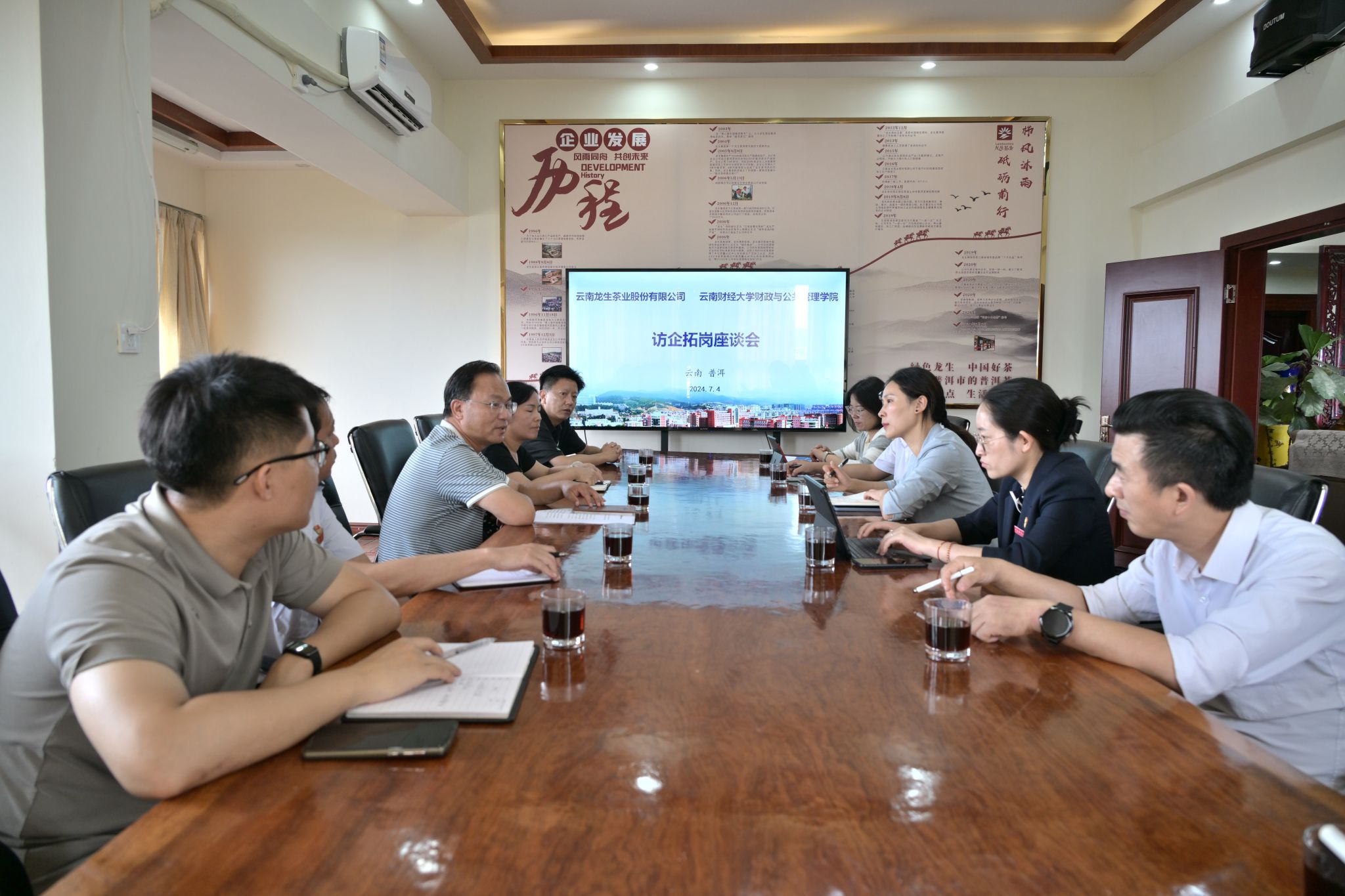 在云南龙生茶叶股份有限公司副总经理顾林冲和财务总监肖燕详细介绍了公司的发展历程、企业文化及在茶叶种植、加工、销售等方面的核心竞争力。双方围绕企业人才需求情况展开了深入交流。王晓芬表示,将积极推荐优秀学生到公司实习、就业,和立道希望企业能够提供更多实习实践岗位,助力学生将所学知识应用于实践。