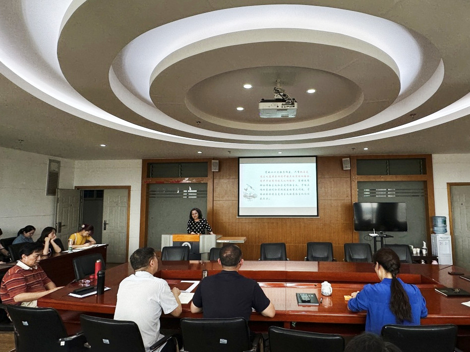 6月28日下午,财政与公共管理学院在逸夫楼923开展学习贯彻习近平新时代中国特色社会主义思想主题教育教职工专题理论学习。学院党委书记荣小红以“《习近平用典》是彰显‘第二个结合’的光辉典范”为题,为全院教职工开展了一次生动、深入的专题学习。