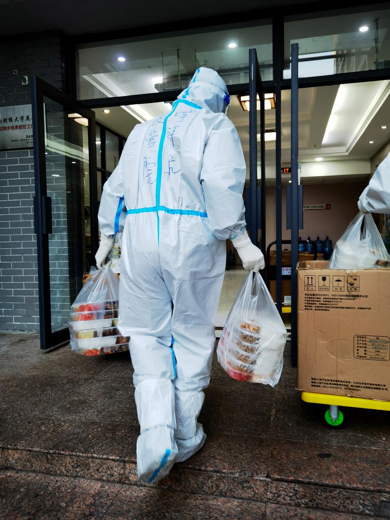 关键时刻,韩全芳、范永娴、李重照三名教师穿上防护服为学生送餐;在学生急需要办理公务的时刻,老师们又变身“跑腿小哥”为同学们上门服务并及时办理签字盖章、文件传递等工作;范永娴老师主动承担办公区域的垃圾清运与厕所清洁工作,为师生健康提供保障。