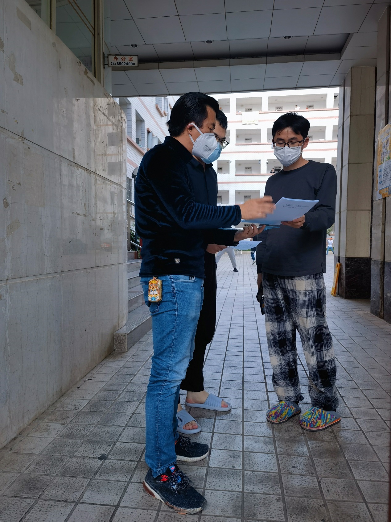 7位老师分组对接到学生所在宿舍楼栋,每天参与维护核酸检测秩序,走访宿舍了解学生需求与困难,每晚定时召开例会汇总一天的工作情况,合力商讨帮助学生解决问题,做好学生与学院、学院与学校、南院与北院之间的沟通桥梁。
