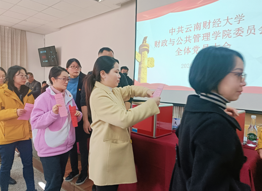 11月26日下午,财政与公共管理学院党委在凌云楼南附401召开换届选举党员大会。学校党委组织部副处级组织员纳秀洁同志到场指导。会议由财政与公共管理学院党委书记朱文主持,学院全体师生党员参加了会议。