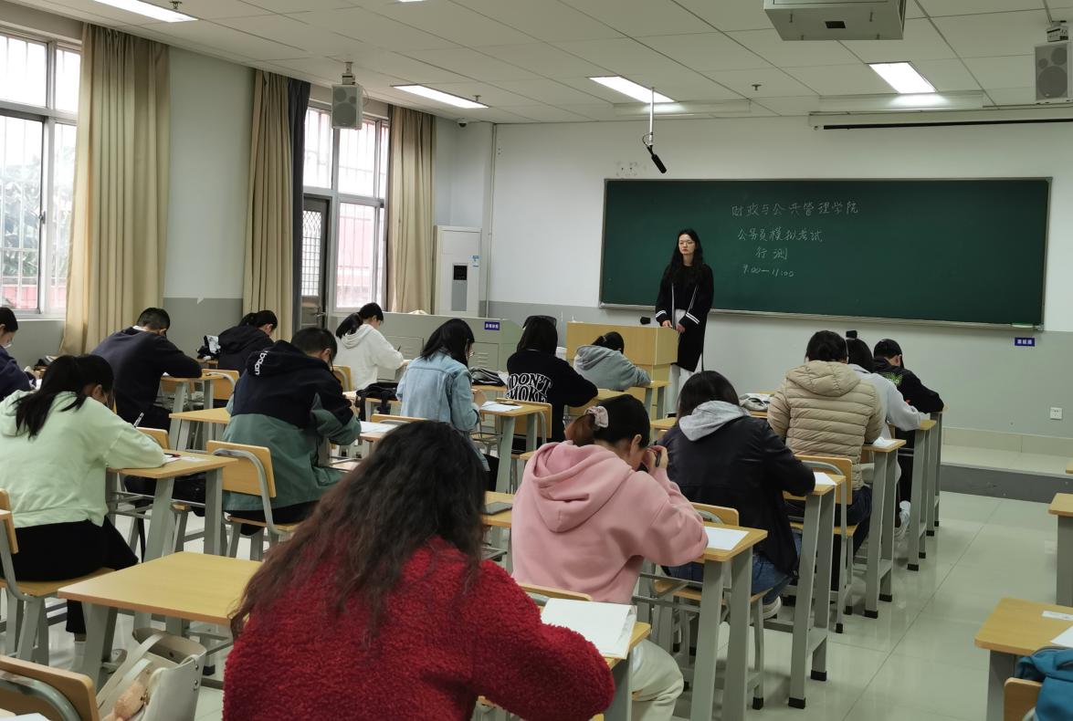为了帮助即将参加公务员招考的同学熟悉考试流程,积累考试经验,提前适应考试氛围,10月29日,财政与公共管理学院在逸夫楼310教室举行公务员模拟考试,2022届30余名毕业生参加。