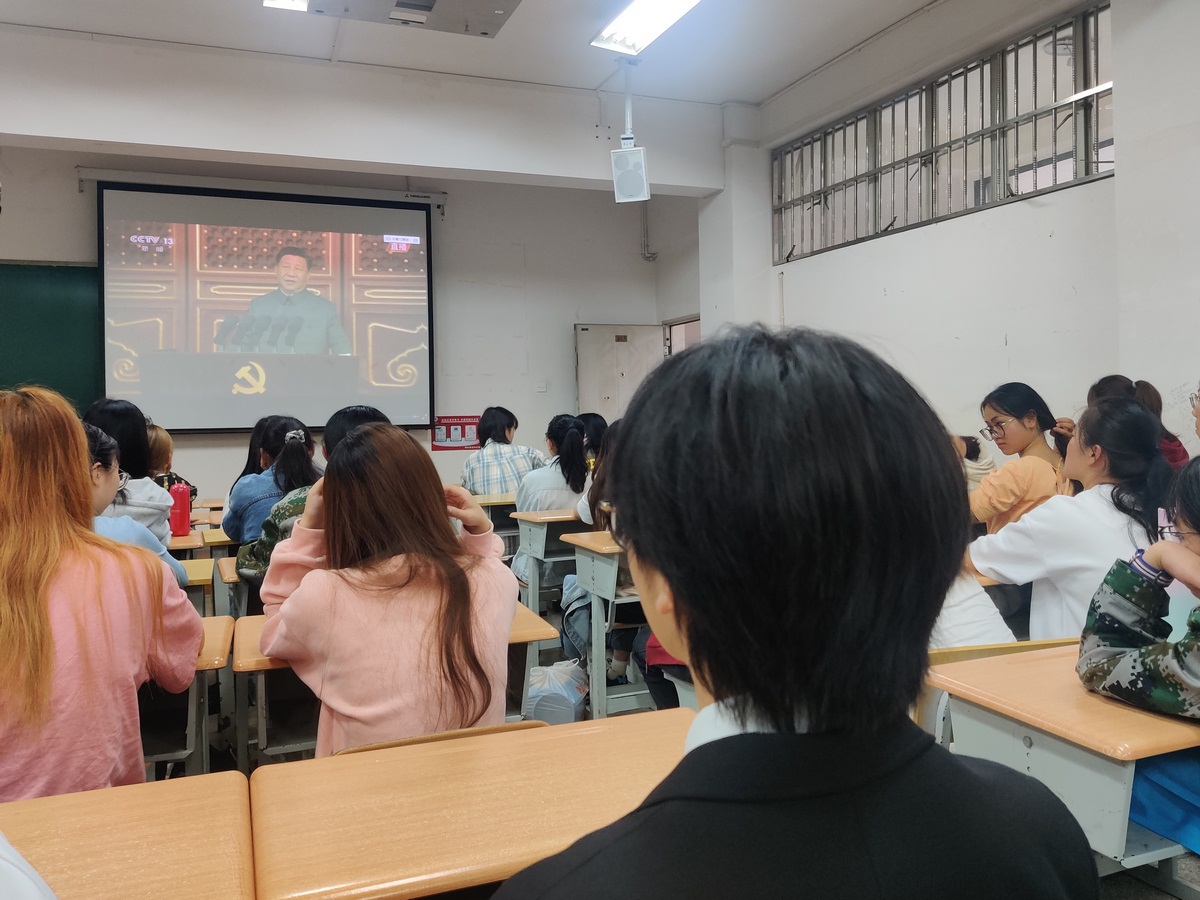 其他年级、班级同学,各党支部、团支部党员在宿舍、家中收听收看庆祝中国共产党成立100周年大会实况直播。