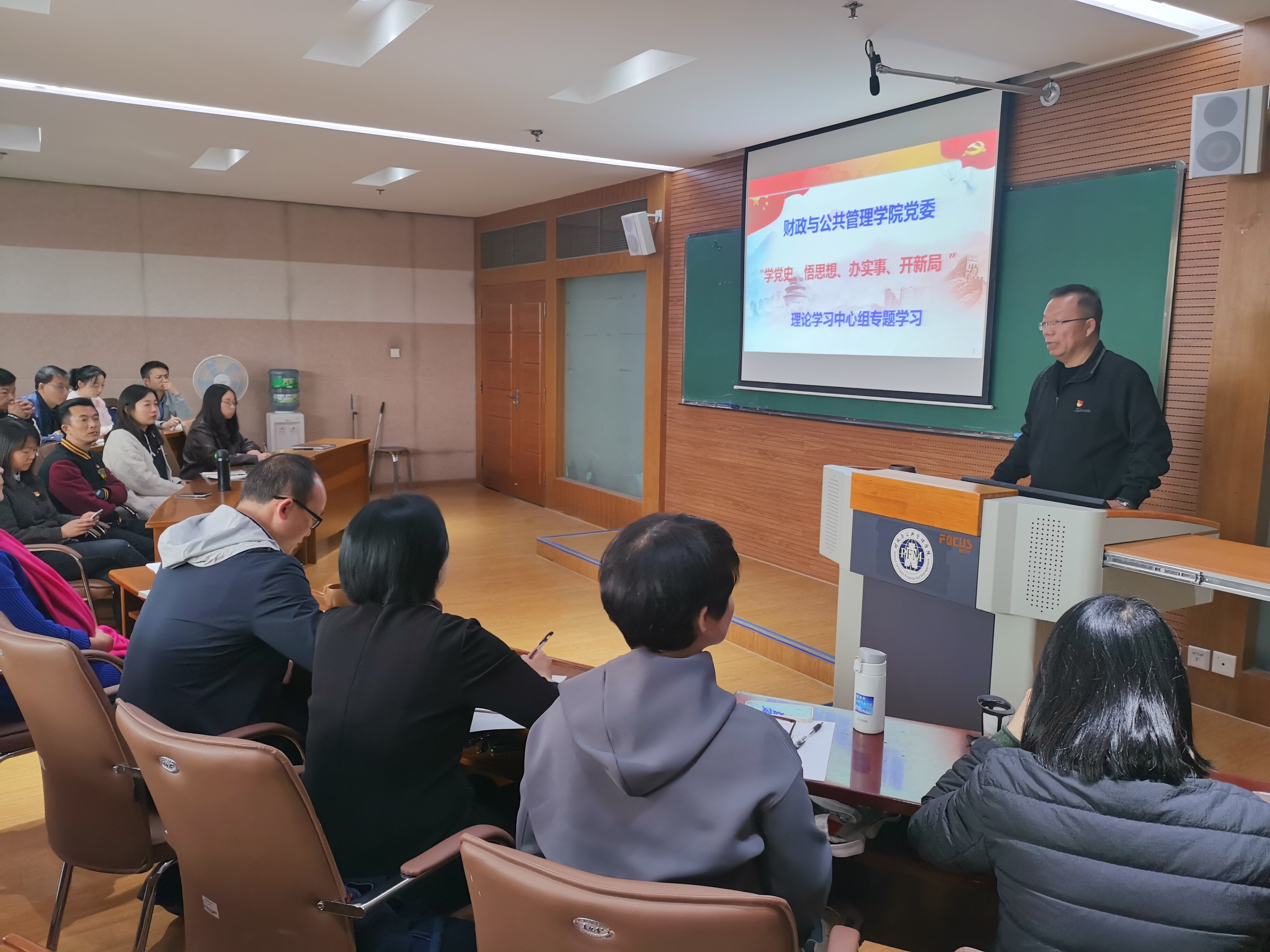 2021年4月6日,财政与公共管理学院在逸夫楼706室举行党委理论学习中心组第二次集中学习,围绕“学党史、悟思想、办实事、开新局”主题深入学习党史、新中国史、改革开放史、社会主义发展史,感悟中国共产党的初心和使命。学习活动由学院党委书记朱文同志领学,中心组成员、基层党支部书记、党小组组长参加学习活动。