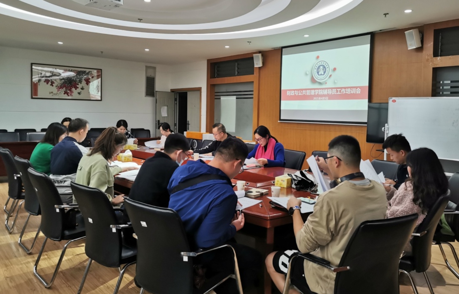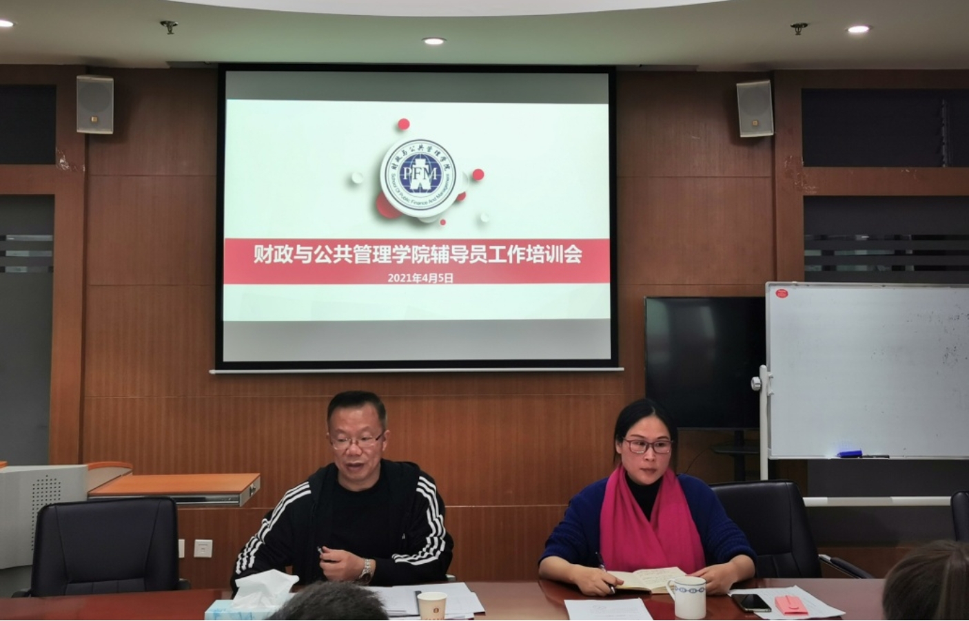 4月5日,财政与公共管理学院在南院逸夫楼923举行辅导员工作培训会。学院党委书记朱文、党委副书记王晓芬以及学院全体专职辅导员参加会议,会议由王晓芬主持。