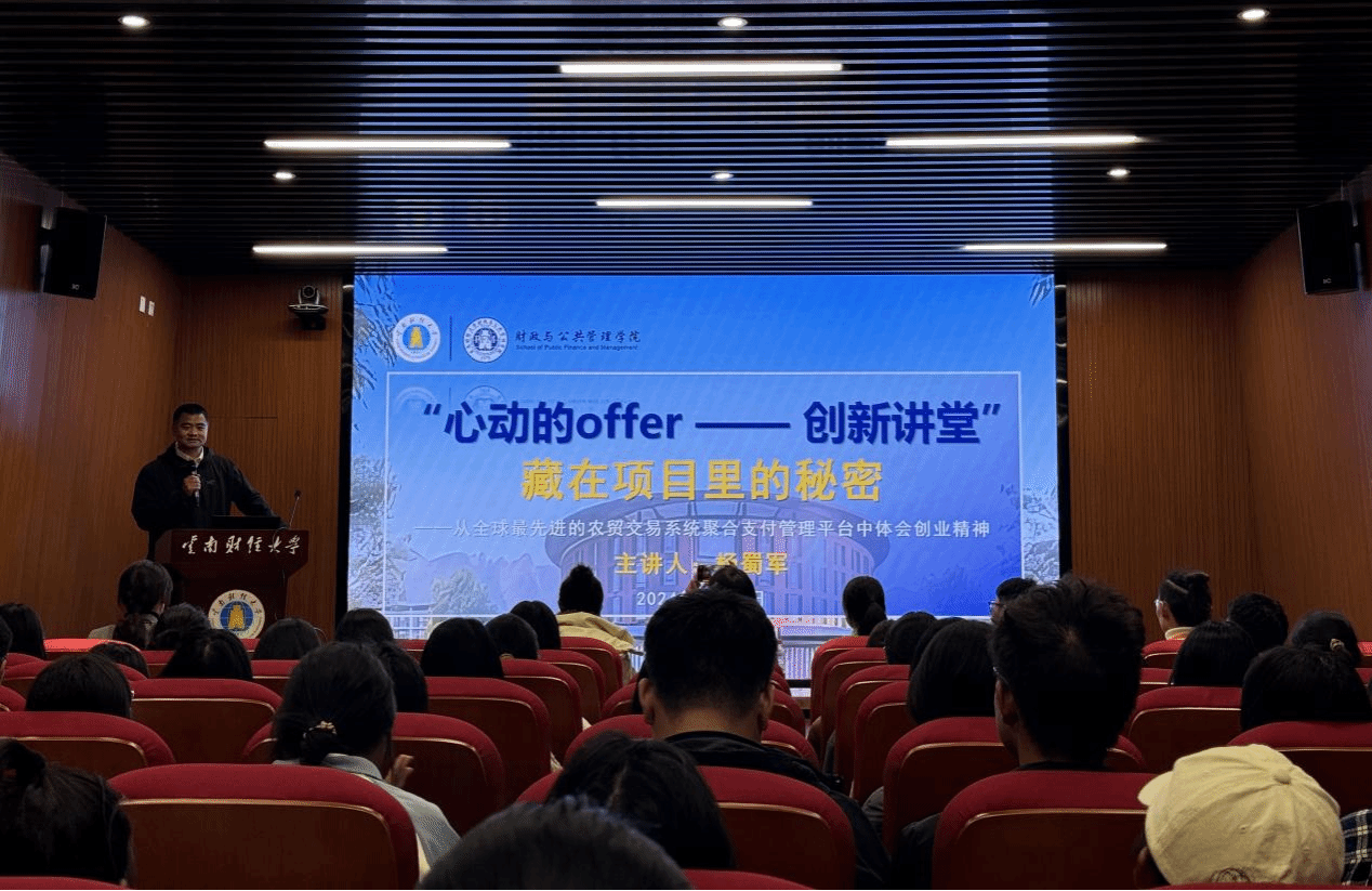 12月6日,财政与公共管理学院在安宁校区齐远楼106报告厅开展“心动的offer”——创新讲堂系列活动。朗坤控股集团CEO、beat365英国官方网站客座教授杨蜀军,以“从全球最先进的农贸交易系统聚合支付管理平台体会创业精神”为题开展讲座。活动由学院党委副书记王晓芬主持。