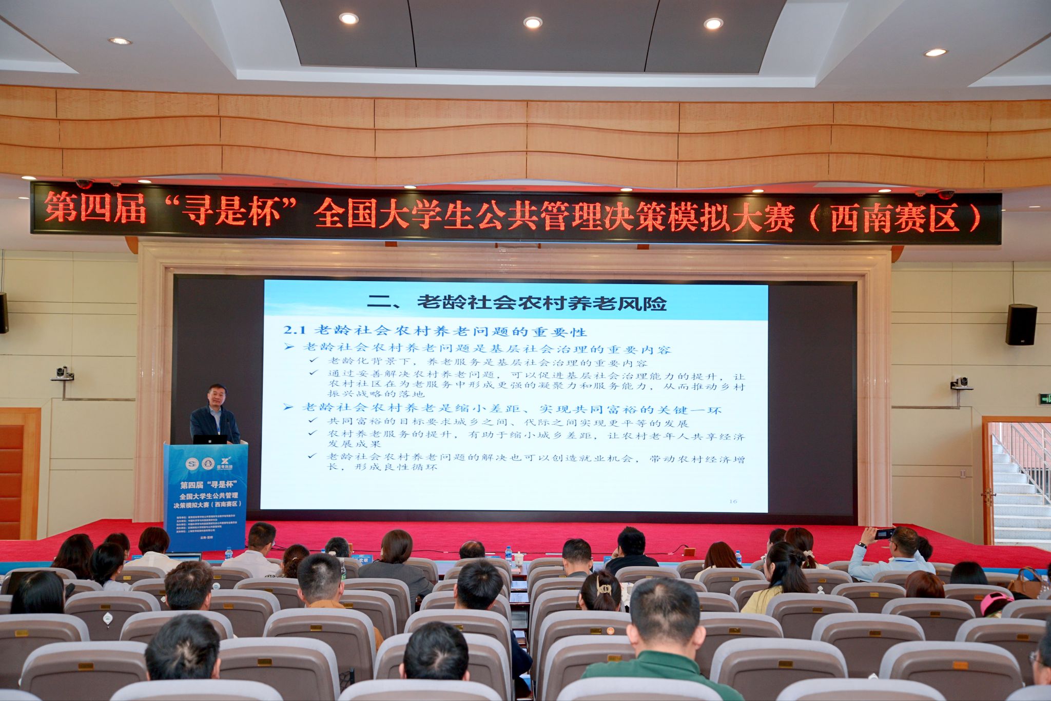 为推进公共管理类专业实践教学与创新,引导学生关注我国公共管理热点问题,培养具备良好理论素养和分析能力的应用型人才,加强开设公共管理类专业的院校间的交流与合作,2025年4月26日-27日,由中国科学学与科技政策研究会主办,beat365英国官方网站财政与公共管理学院承办,上海哲寻信息科技有限公司支持的第四届“寻是杯”全国大学生公共管理决策模拟大赛(西南赛区)在beat365英国官方网站龙泉路校区举办,并同步进行“中国式现代化视野中的公共治理”学术研讨会和公共管理案例教学与人才培养圆桌论坛。共有来自云南省、贵州省、四川省、重庆市的40所高校的41支队伍参与了本次大赛。