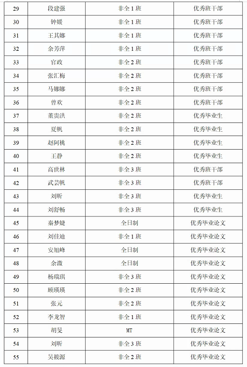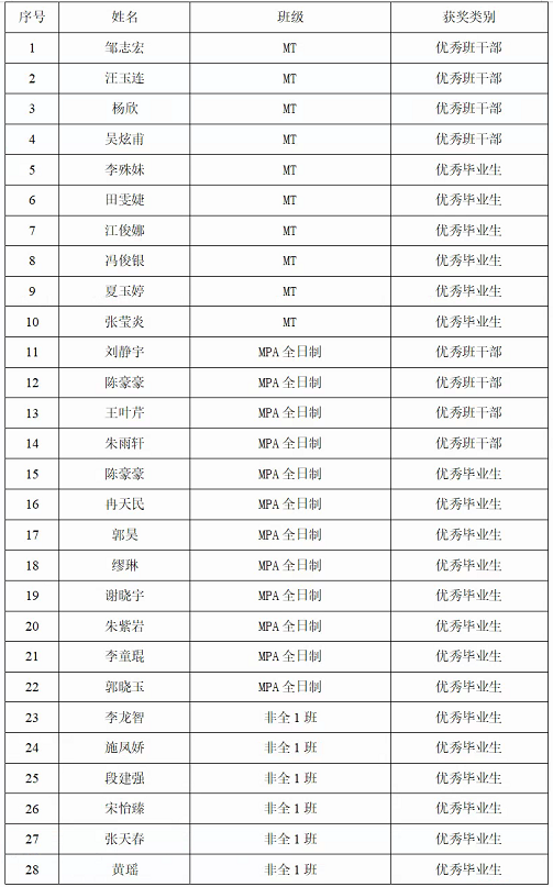 根据《beat365英国官方网站财政与公共管理学院专业硕士研究生优秀毕业生评选管理办法》《beat365英国官方网站财政与公共管理学院专业硕士研究生优秀学位论文评选办法》,财政与公共管理学院本着公平、公开、公正的原则,以学生课程成绩、学位论文匿名评审成绩、答辩成绩以及研究生年度考核成绩等为依据,开展2023届硕士研究生“优秀毕业生”、“优秀学位论文获得者”、“优秀学生干部”评选,共评选出优秀毕业生26人,优秀学位论文获得者11人,优秀学生干部18人,具体名单如下: