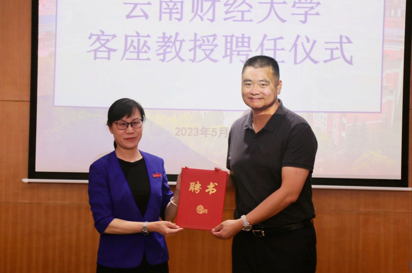 杨蜀军在讲话中深情回忆了自己在云财的求学时光,非常感激母校的培养、认可和鼓励。他表示,受聘为母校的客座教授,既是褒奖和荣誉,更是沉甸甸的责任。他表示,今后将把朗坤集团的成长与助力学校的发展联系起来,更好地回馈母校。