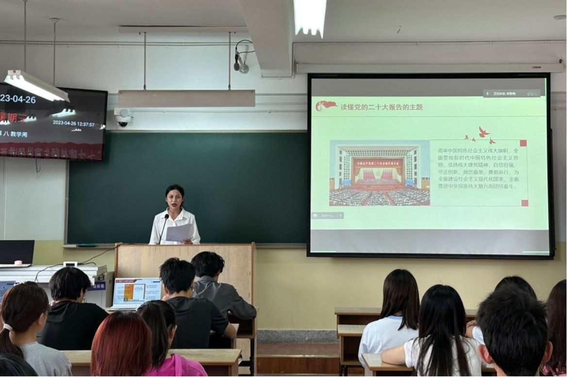 杨志良以“青春共话二十大,扬帆奋进新征程”为题,紧扣党的二十大报告原文,围绕党的二十大报告的主题和关键论述,对党的二十大精神作了系统宣讲。她结合当代青年实际,重点领学了习近平总书记对青年发展寄予的期望。她认为,同学们作为新时代青年,要明确自己肩负的使命与担当,立志做“有理想、敢担当、能吃苦、肯奋斗的新时代好青年”,朝着实现中华民族伟大复兴的中国梦奋勇前进,在青春的赛场上跑出青年最好的成绩。