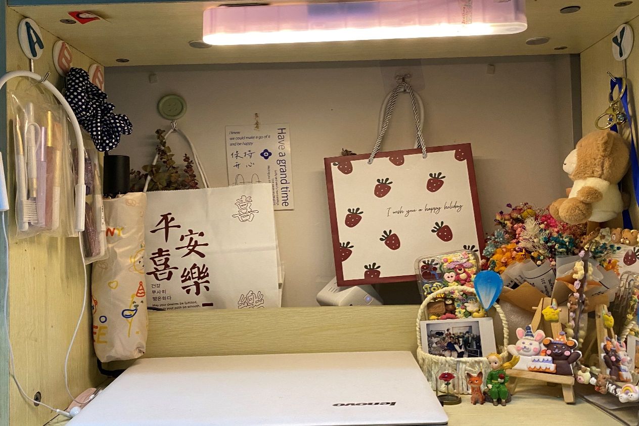 本次活动由六个主题组成,以劳动清扫为主,分别从宿舍地面、桌椅、床铺、衣柜等几方面让同学们用自己的实际劳动维护自己生活区域的整洁。其中,以“整理书桌”为主题的环节完成的尤为出色,同学们有的采用鲜花和废水瓶结合做出了一瓶插花,为桌面增添了盎然生机;有的划分出指定区域,将对应物品放在指定区域中,使得桌面井然有序。每日的打扫不仅使宿舍随时保持着干净整洁,也给同学们带去了一天的好心情。这次劳动教育中涌现了无数劳动小能手,动手优化、改造出许多优美舒适的住宿环境,同学们用自己的行动呈现了一次精彩纷呈的宿舍劳动文化节活动。