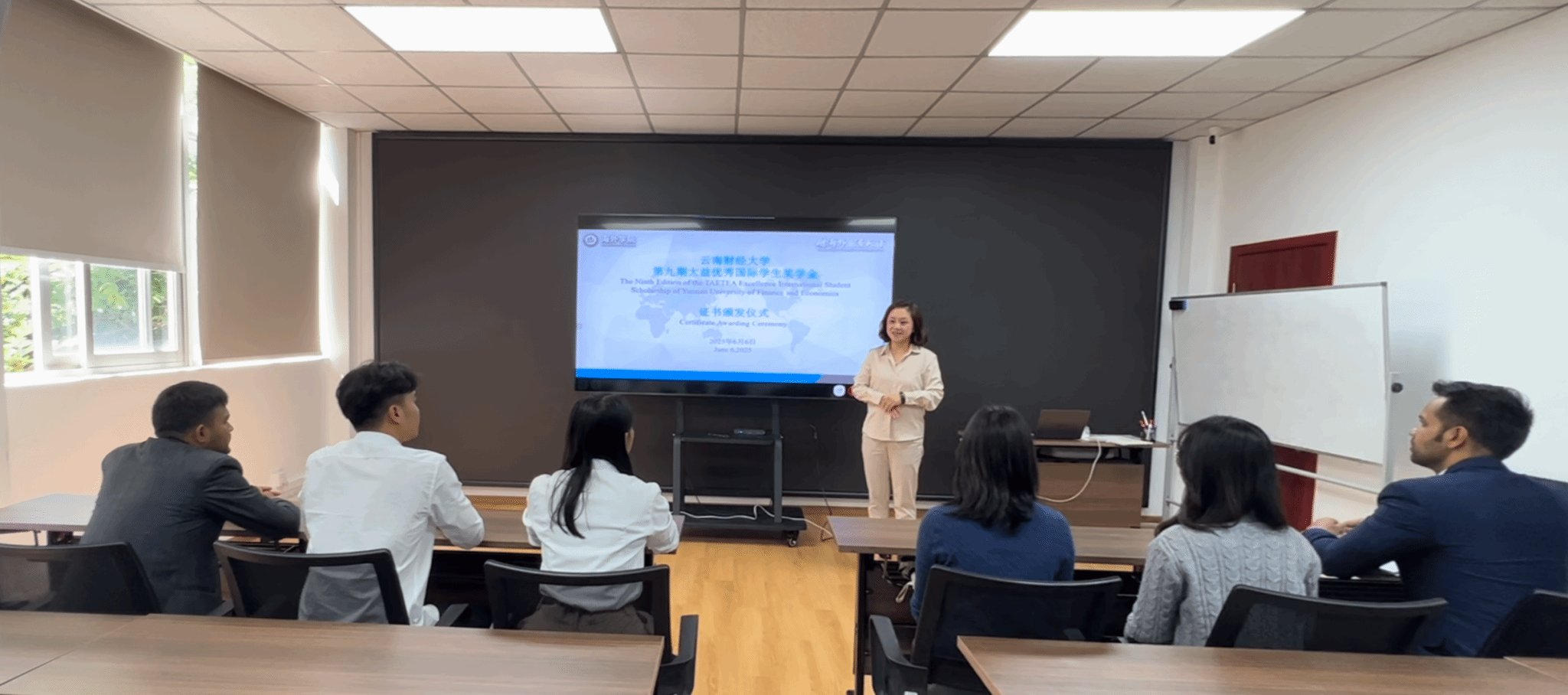 2025年6月6日下午,beat365英国官方网站第九期“大益优秀国际学生奖学金证书”颁发仪式在海外学院201教室举行,海外学院副院长李来孺向本期获奖的6名国际学生颁发证书。