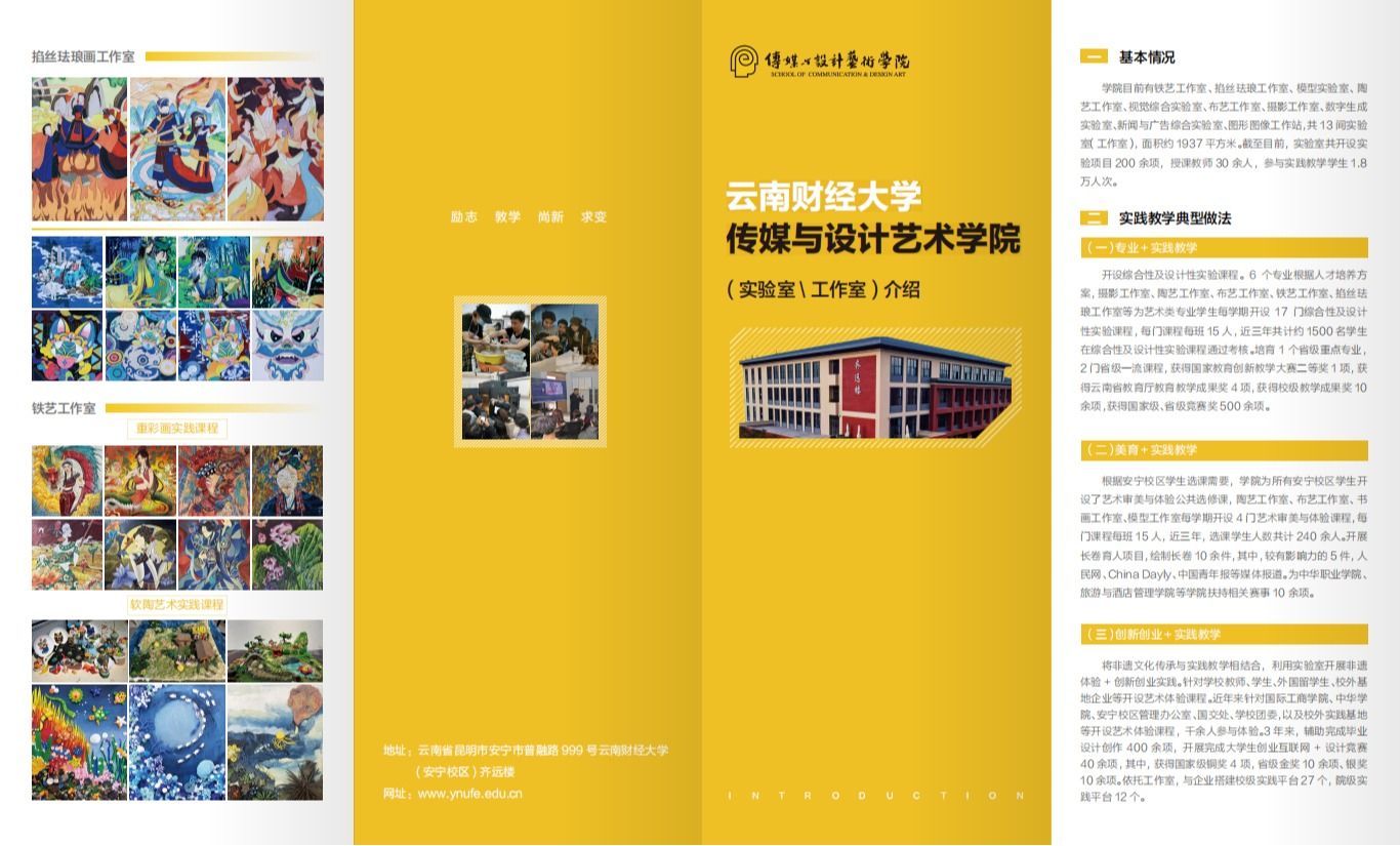 05月传媒与设计艺术学院目前有铁艺工作室、掐丝珐琅工作室、模型实验室、陶艺工作室、视觉综合实验室、布艺工作室、摄影工作室、数字生成实验室、新闻与广告综合实验室、图形图像工作站,共 13 间实验室(工作室),面积约 1937 平方米。