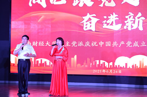 晚会由农工党支部、民进支部和致公党支部三位教师代表主持。文艺晚会在8位民主党派主委、负责人和代表朗诵的《沁园春•雪》中拉开帷幕。民建支部合唱《没有共产党就没有新中国》及诗朗诵《唱支山歌给党听》;民革支部藏族舞《玛吉阿米》和独唱《敖包相会》;民盟支部旗袍秀《歌唱共产党》及健美操《中国喜事》;民进支部诗朗诵《盛世中华》及英文诗朗诵《沁园春·雪》;致公党支部诗朗诵《向中国共产党致敬》和歌舞《没有共产党就没有新中国》;农工支部朗诵《追梦》及合唱《我的祖国》;九三学社支部诗朗诵《沁园春·长沙》《水调歌头·游泳》及小合唱《团结就是力量》等16个节目。精彩纷呈的节目饱含对中国共产党成立100周年的真诚祝福,表达了各党派与中国共产党荣辱与共、肝胆相照的情感与坚定信念。
