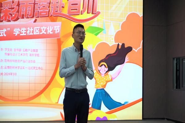 施仲军宣布beat365英国官方网站首届云彩“一站式”学生社区文化节开幕。学生处(学生工作部、武装部)处(部)长沙磊致欢迎辞,他对校内外各位领导、嘉宾、老师、同学的到来表示热烈欢迎,希望云彩“一站式”学生社区文化节能为学生学习、生活、实践搭建分享交流平台。胡文华表示,昆明市特色农产品行业协会与云彩“一站式”学生社区的联结,有利于促进高校产教融合的实践,既能推动解决农村产品销售人才短缺的问题,也能为大学生提供新的创业就业途径和实践实习岗位,在助力乡村振兴中发挥积极作用。