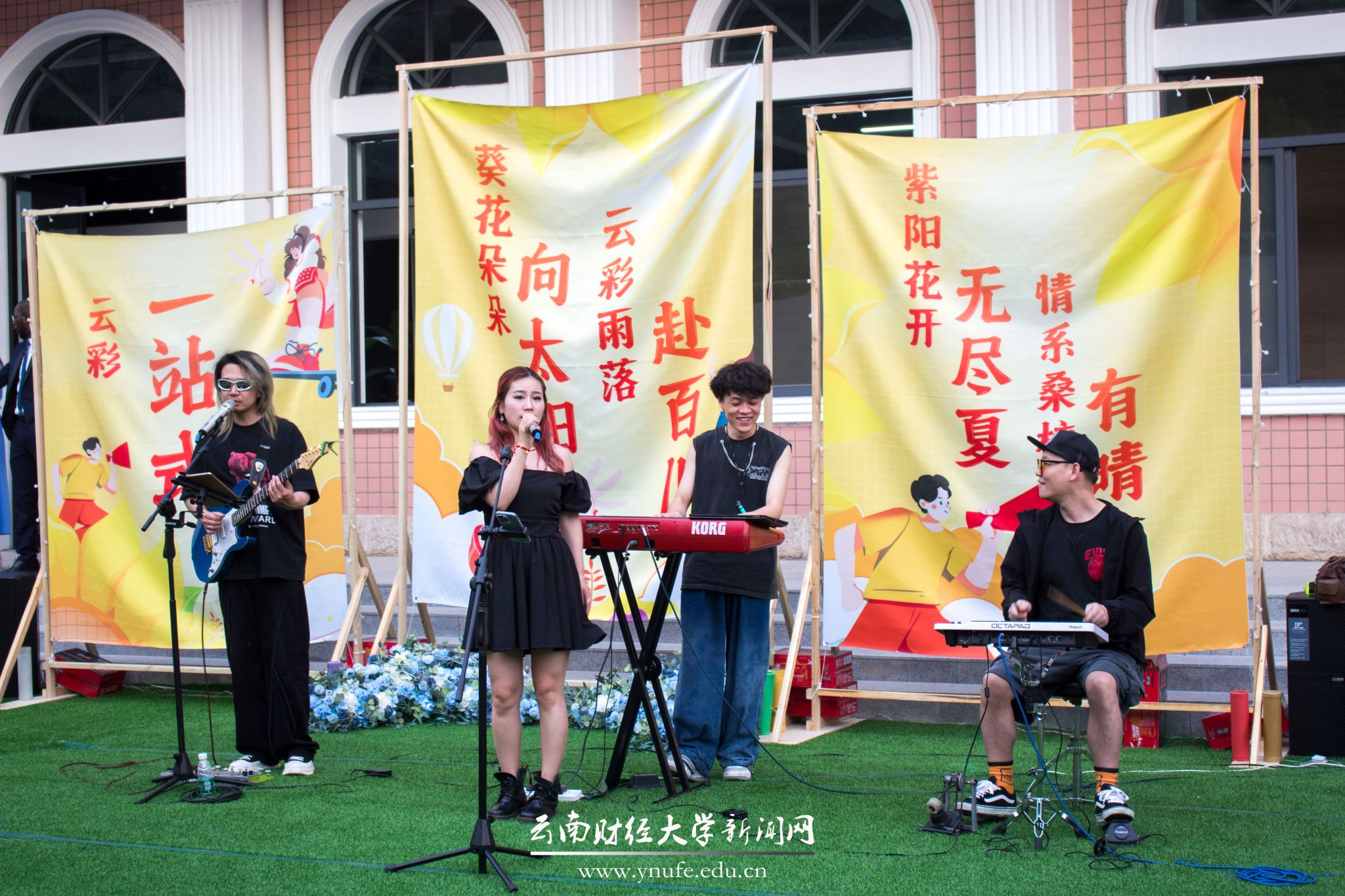 在“聚拢来是烟火 摊开来是人间”集市上,29个汇集非遗传承作品、学生文创作品、传统香道与心理健康、留学生异国服饰和手工艺品展示、特色农产品展销、特色美食等项目的摊点为师生们带来了同赶“云彩街(gai)子天”的精彩体验。其中,学生处心理教育与咨询中心摊点将传统香道、汉服文化与心理健康相结合,让学生在感受传统文化的过程中提升心理健康素养;资助中心向阳工作站摊点将剪纸艺术带到现场,让同学们学习和感受优秀传统文化的魅力;传媒与设计艺术学院退休教师武斌老师的铁艺工作坊摊点向同学们展示了用废铁制作成的各种精美工艺品;传媒与设计艺术学院学生自主创业项目展示了以学校70周年校庆为主题的各类文创产品;昆明市特色农产品行业协会的13个摊点在展销云南各地州特色农产品的同时,启发同学们思考如何发挥财经类专业优势更好地服务乡村振兴;国际学生摊点展示了部分非洲和东南亚国家的服饰、手工艺品,吸引了众多中国学生驻足交流……传媒与设计艺术学院还在活动现场展示了2024届学生毕业作品电子展览。